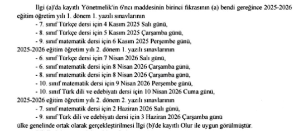 İl Geneli Ortak Sınav Takvimi açıklandı. Sınavlara girecek...